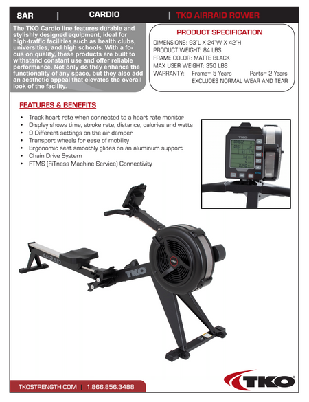 TKO 8AR AirRaid Rower Specifications